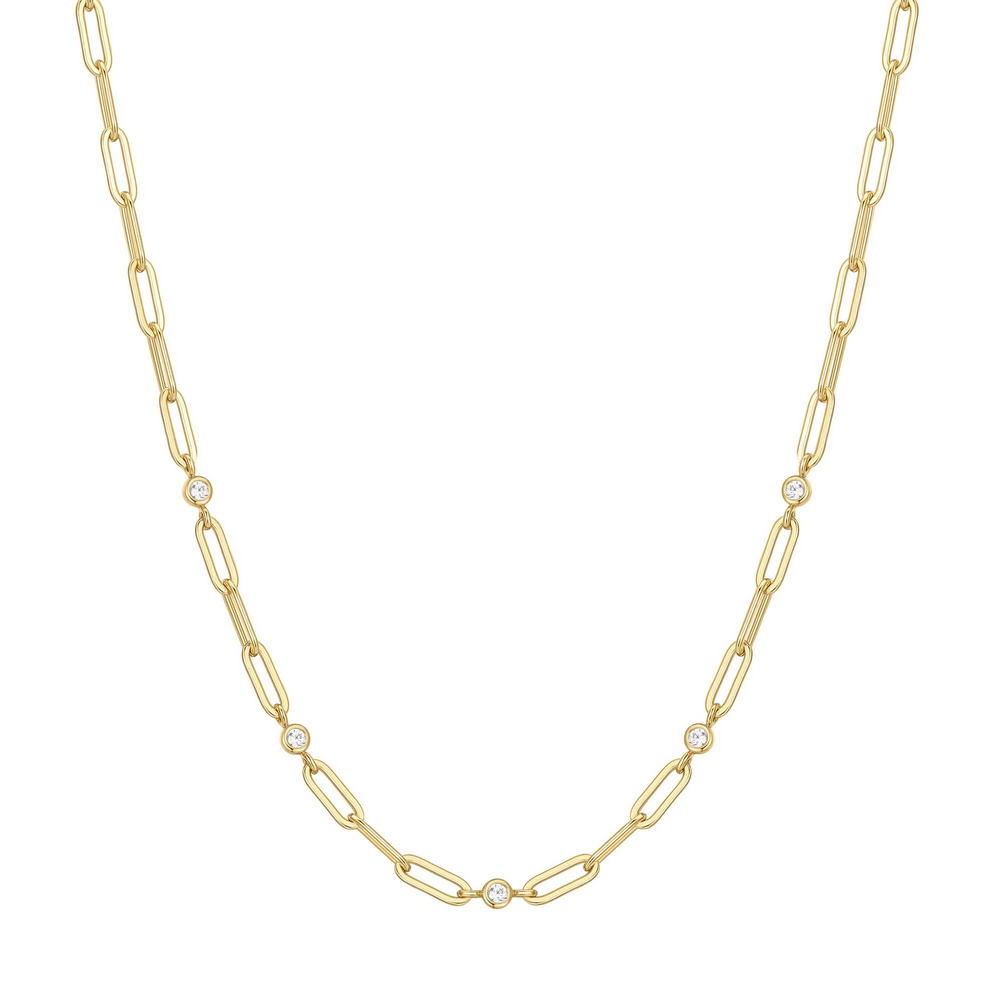 Discover a new level of playful minimalism with this station necklace. The trending deconstructed design brings a fresh, innovative approach to the classic chain. Wear it alone for a minimalist look or layer it with other chains of different thicknesses and textures to create diverse styles.