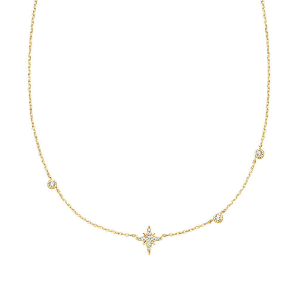 Gold Eight-Pointed Star Cubic Zirconia Station Necklace