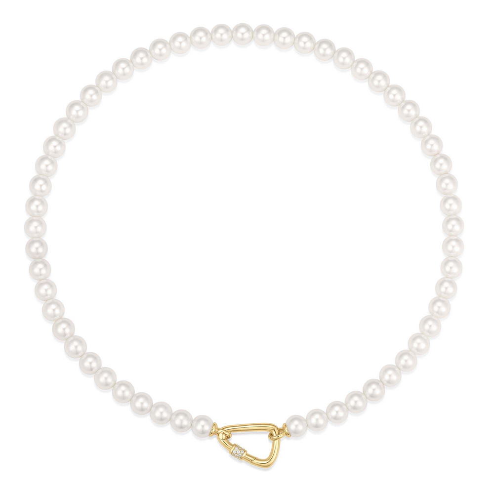 Embrace the latest trend of playful minimalism. Imagine pearls in a new light with this striking necklace, combining lustrous pearls and a sleek lobster clasp. Pair it with your favorite casual wear for a cool, modern twist on timeless design.