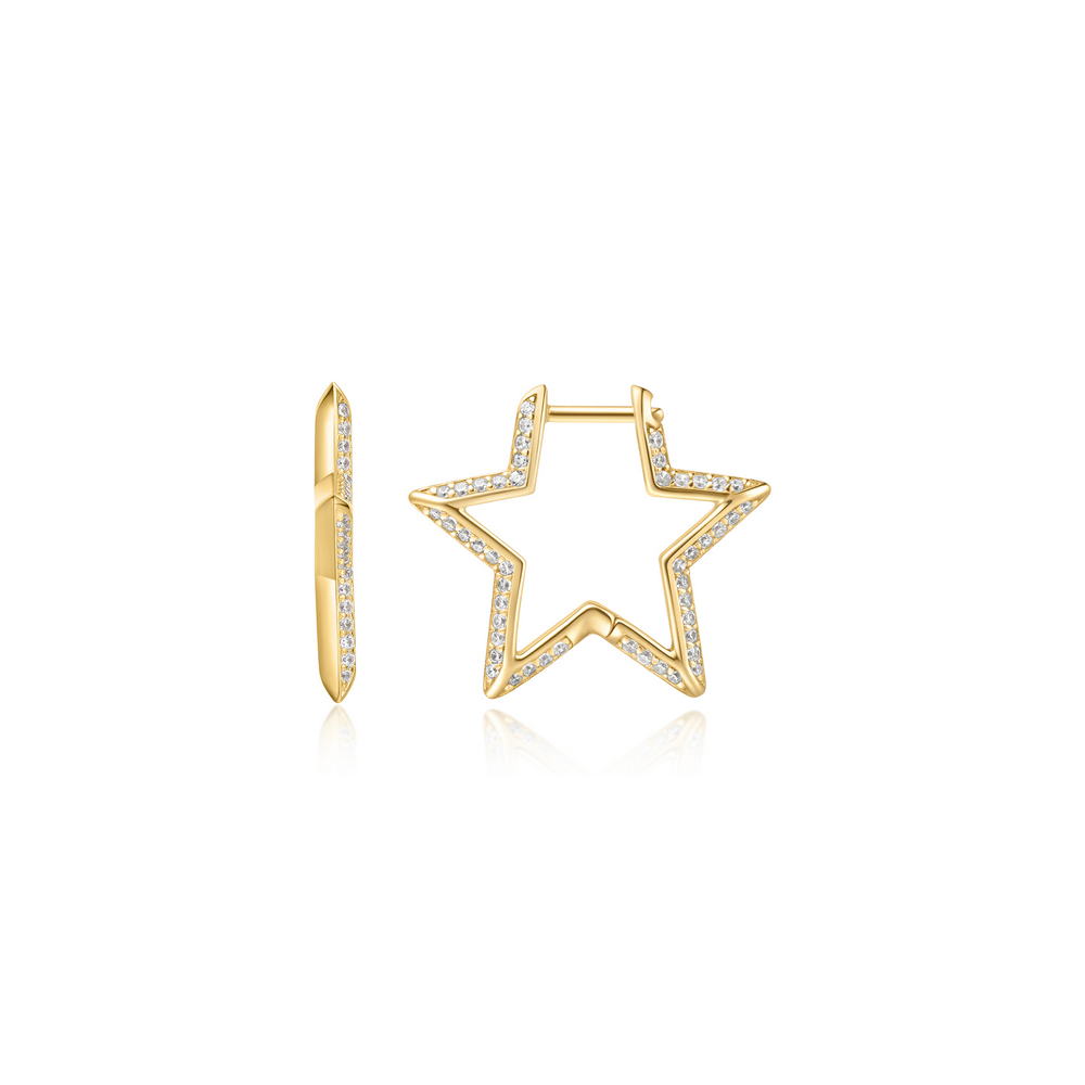 Embrace colour, light, and the beauty of playful styling with Sunny Sparkler. This daring and edgy look is perfect for those who love to stand out. These eye-catching earrings, featuring a sparkling star hoop design set with pavé cubic zirconia, add a cool and vibrant touch to any outfit. They are statement enough to be worn solo or stacked with other studs, hoops, and huggies.