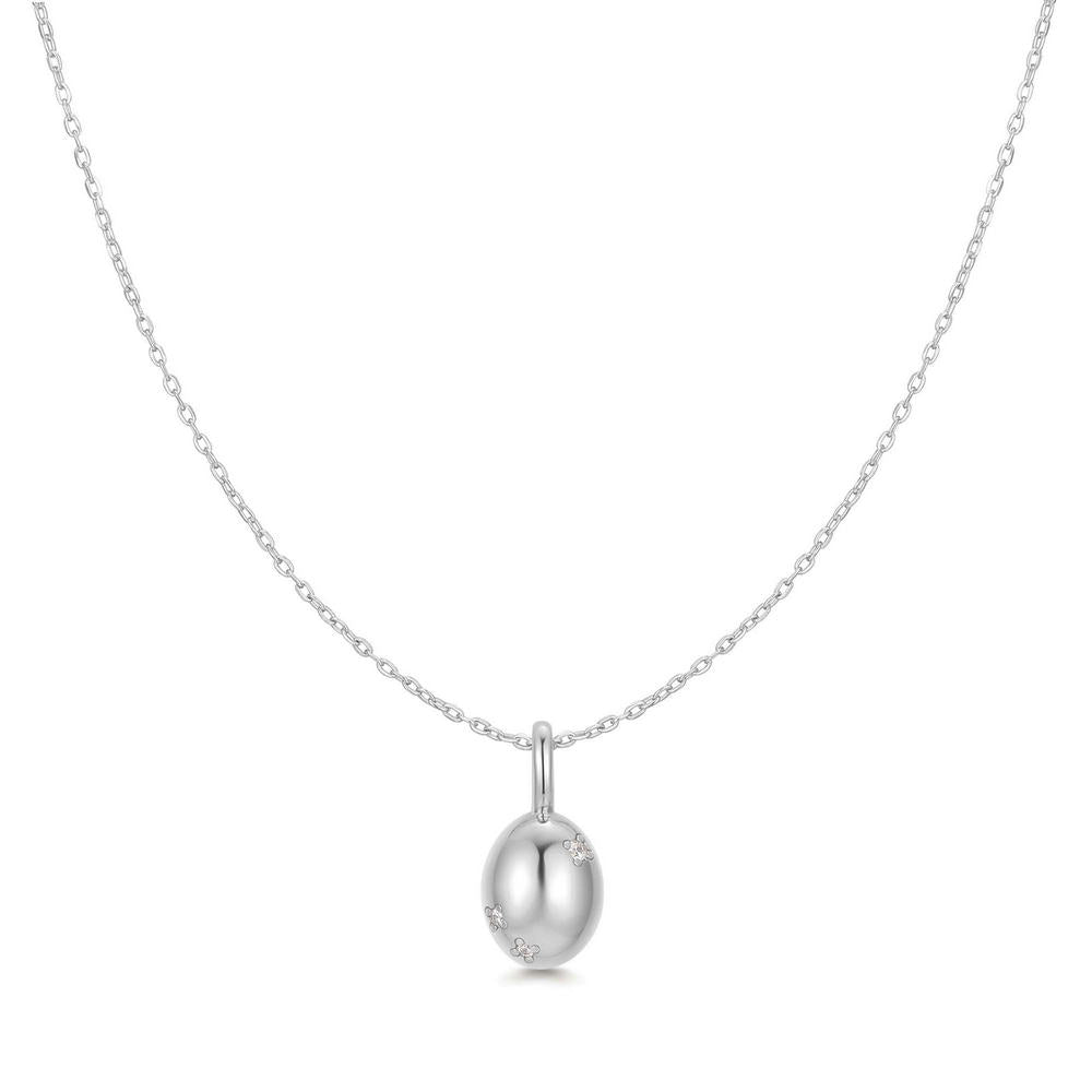 Silver Floral Oval Pendent Necklace