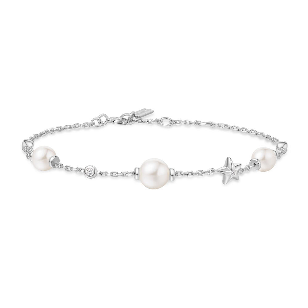 Miss Dainty is designed for the woman who loves elegance with a touch of whimsy. The exquisite and romantic design, combined with fine craftsmanship, ensures you radiate charm. This pearl and star station bracelet showcases delicate details, embodying grace and subtle sophistication, making it perfect for both professional occasions and everyday wear.